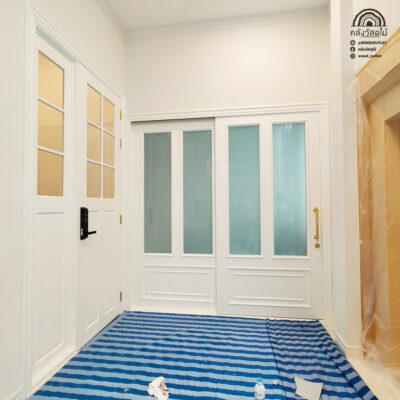 ประตูไม้นอกแบบสั่งทำพิเศษ ทำสีขาว