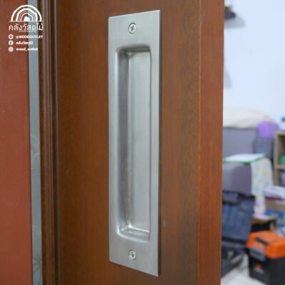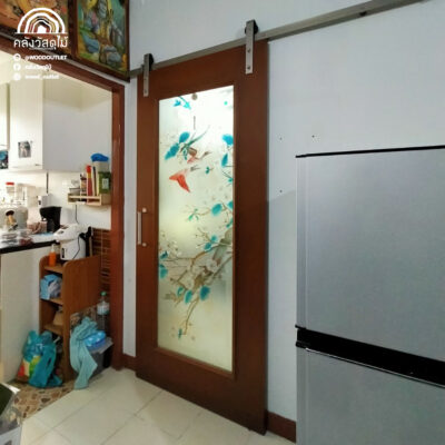 ประตูกระจกรุ่น Master-015 ทำสีธรรมชาติ พร้อมรางเลื่อนรุ่น BDH-03 และมือจับรุ่น VTF-10 – VTF-13