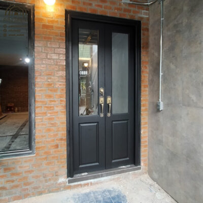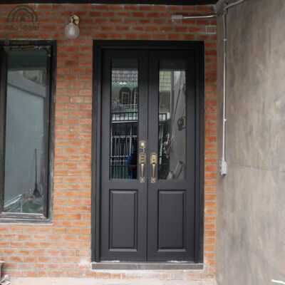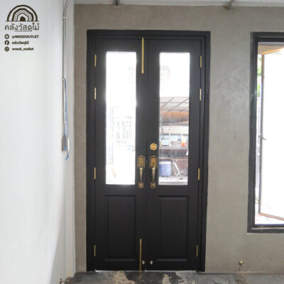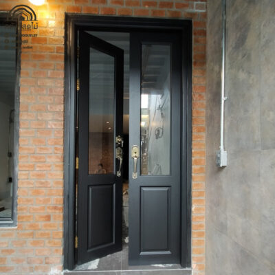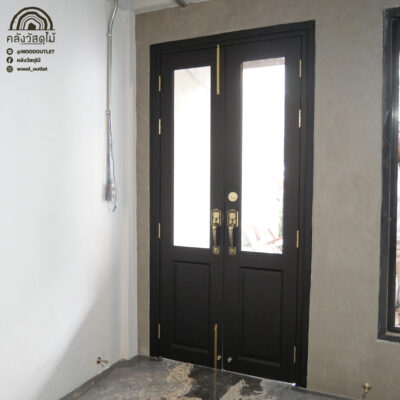 ประตูกระจกบานคู่ นอกแบบสั่งทำพิเศษ ทำสีดำ