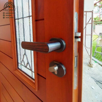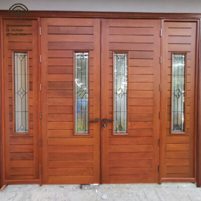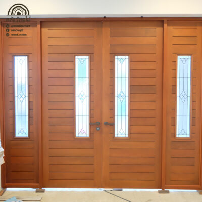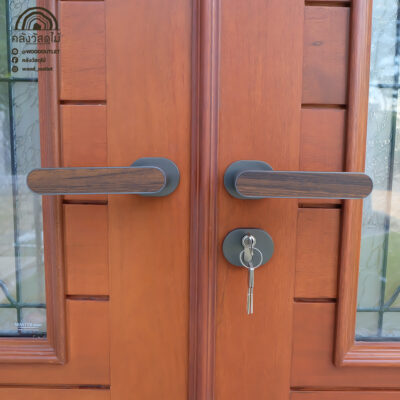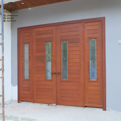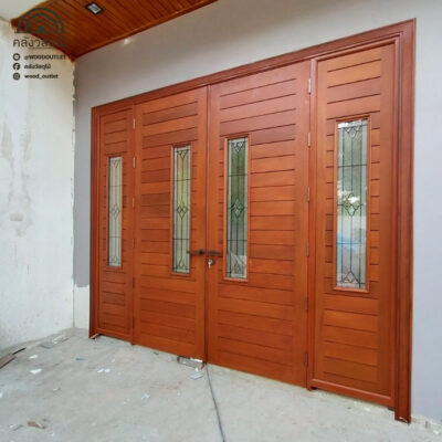 ประตู้ไม้บ้านคู่ ทําสีธรรมชาติ พร้อมวงกบ SET3
