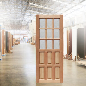 ประตูไม้สยาแดงพร้อมกระจกฝ้า รุ่น MD 80×200 ซม.