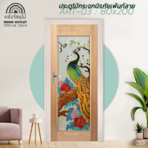 ประตูไม้กระจกนิรภัย กระจกเพ้นท์ลาย รุ่น ART-03 ขนาด 80×200 cm.