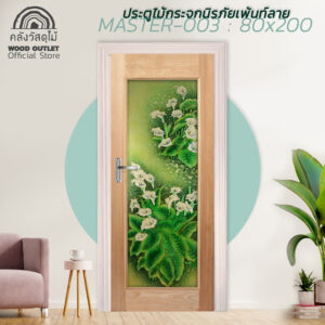 ประตูไม้กระจกนิรภัย กระจกเพ้นท์ลาย รุ่น MASTER-003 ขนาด 80×200 cm.
