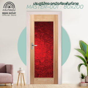 ประตูไม้กระจกนิรภัย กระจกเพ้นท์ลาย รุ่น MASTER-001 ขนาด 80×200 cm.