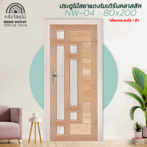 ประตูกระจกไม้สยาแดง รุ่น NW-04 เลือกกระจกใสและฝ้า ขนาด 80×200 ซม.