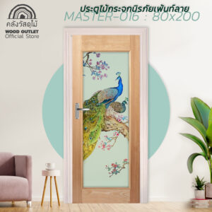 ประตูไม้กระจกนิรภัย กระจกเพ้นท์ลาย รุ่น MASTER-016 ขนาด 80×200 cm.