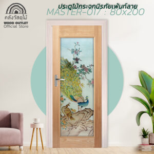 ประตูไม้กระจกนิรภัย กระจกเพ้นท์ลาย รุ่น MASTER-017 ขนาด 80×200 cm.