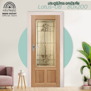 ประตูไม้กระจกนิรภัย รุ่น LOTUS-08 ขนาด 80×200 cm.