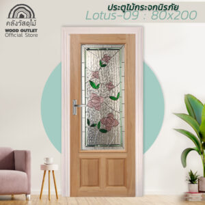 ประตูไม้กระจกนิรภัย รุ่น LOTUS-09 ขนาด 80×200 cm.