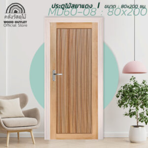 ประตูไม้สยาแดงรุ่น MD60-08 ขนาด 80×200 ซม.