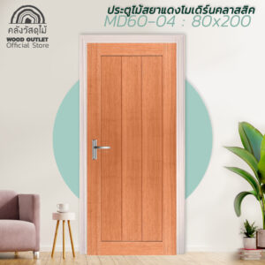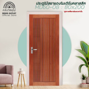 ประตูไม้สยาแดงรุ่น MD60-04 ขนาด 80×200 ซม.