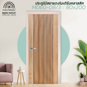 ประตูไม้สยาแดงรุ่น MD60-08/3 ขนาด 80×200 ซม.