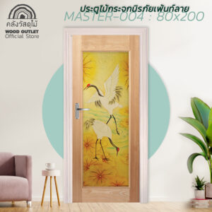 ประตูไม้กระจกนิรภัย กระจกเพ้นท์ลาย รุ่น MASTER-04 ขนาด 80×200 cm.