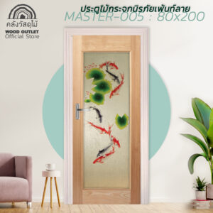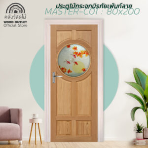 ประตูไม้กระจกนิรภัย กระจกเพ้นท์ลาย รุ่น MASTER-05 ขนาด 80×200 cm.