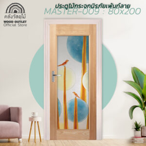 ประตูไม้กระจกนิรภัย กระจกเพ้นท์ลาย รุ่น MASTER-09 ขนาด 80×200 cm.
