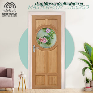 ประตูไม้กระจกนิรภัย กระจกเพ้นท์ลาย รุ่น MASTER-C02 ขนาด 80×200 cm.