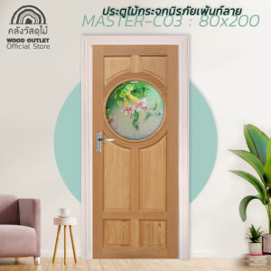 ประตูไม้กระจกนิรภัย กระจกเพ้นท์ลาย รุ่น MASTER-C03 ขนาด 80×200 cm.