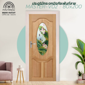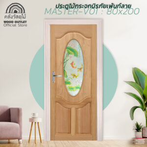 ประตูไม้กระจกนิรภัย กระจกเพ้นท์ลาย รุ่น MASTER-V02 ขนาด 80×200 cm.