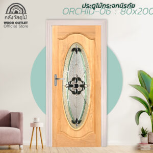 ประตูไม้กระจกนิรภัย รุ่น ORCHID-06 ขนาด 80×200 cm.