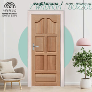 ประตูไม้สยาแดง 7 ฟักปีกนก ขนาด 80×200 ซม.