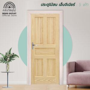 ประตูไม้สน เอ็นจิเนียร์ รุ่น : 5 ฟัก ขนาด 80×200 cm.