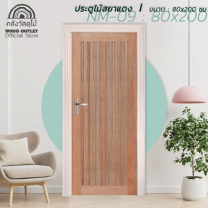 ประตูไม้สยาแดง รุ่น NM-09 ขนาด 80×200 ซม.