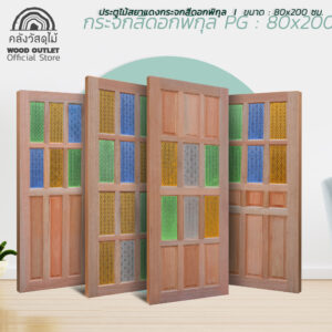 ประตูไม้สยาแดงพร้อมกระจกสีดอกพิกุล รุ่น PG ขนาด 80×200 ซม.