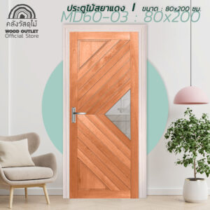 ประตูไม้สยาแดงรุ่น MD60-03 ขนาด 80×200 ซม.