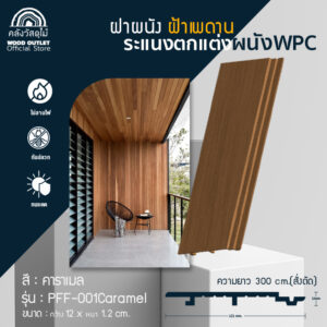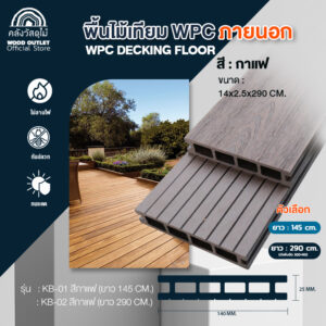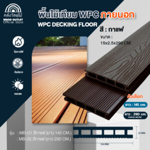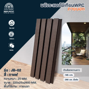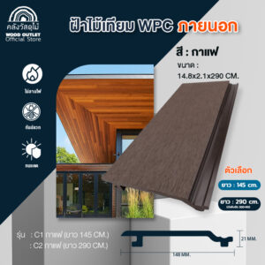 ฝ้าไม้เทียมติดผนัง WPC ภายนอก สีกาแฟ ขนาด 14.8×2.1×290 cm. ระแนงไม้เทียม ระแนงไม้WPC ไม้ผนังภายนอก