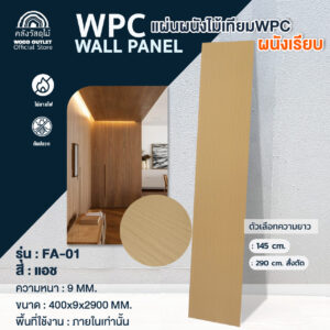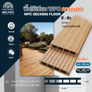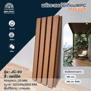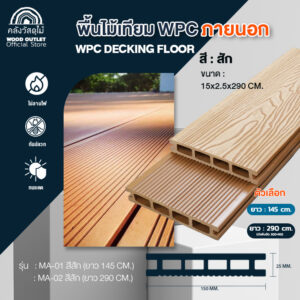 ฝ้าไม้เทียมติดผนัง WPC ภายนอก สีสัก ขนาด 14.8×2.1×290 cm. ระแนงไม้เทียม ระแนงไม้WPC ไม้ผนังภายนอก