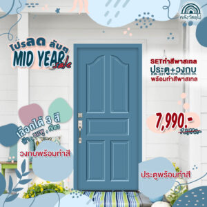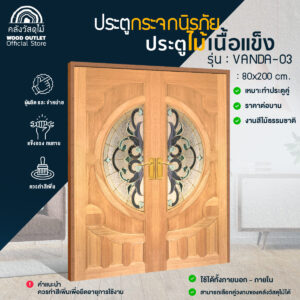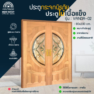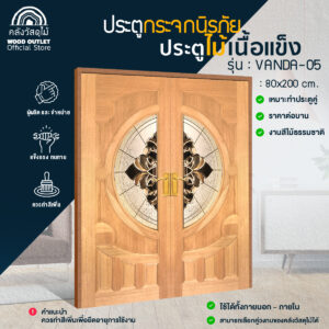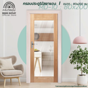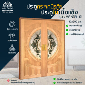 COMBO SET ประตูไม้สยาแดง รุ่น 7 ฟักปีกนก ขนาด 80 x 200 ซม. + วงกบประตู + ลูกบิดประตู VTF-04