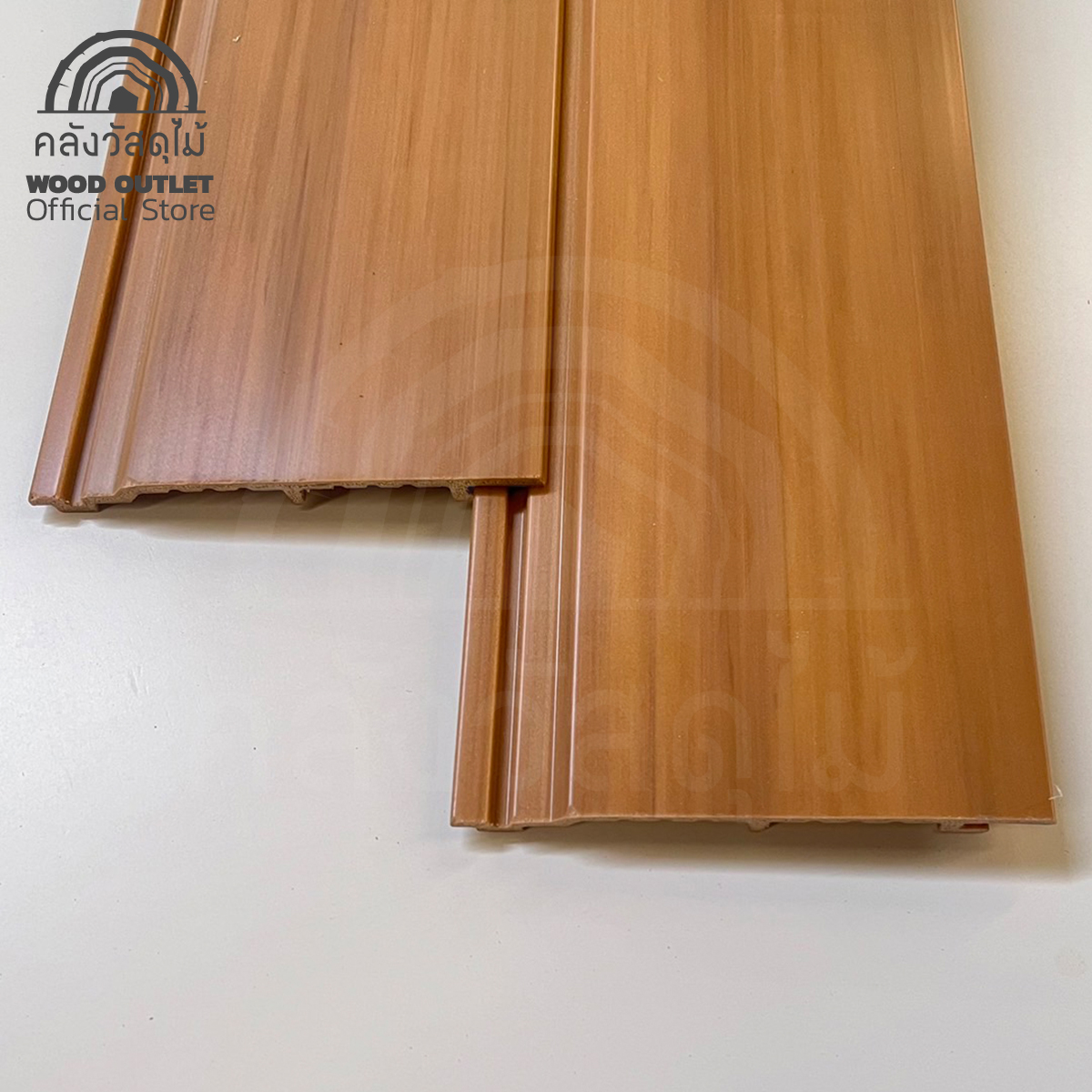ระแนงไม้เทียมติดผนัง WPC งานภายนอก ฝ้าผนัง ฝาเพดาน รุ่น : PFF-001 สีคาราเมล ขนาด 12×1.2×300 cm. ยาว 300 ซม. (สั่งตัด 150 ซม. เท่านั้น) ระแนงไม้เทียม ระแนงไม้WPC ไม้ผนังภายนอก