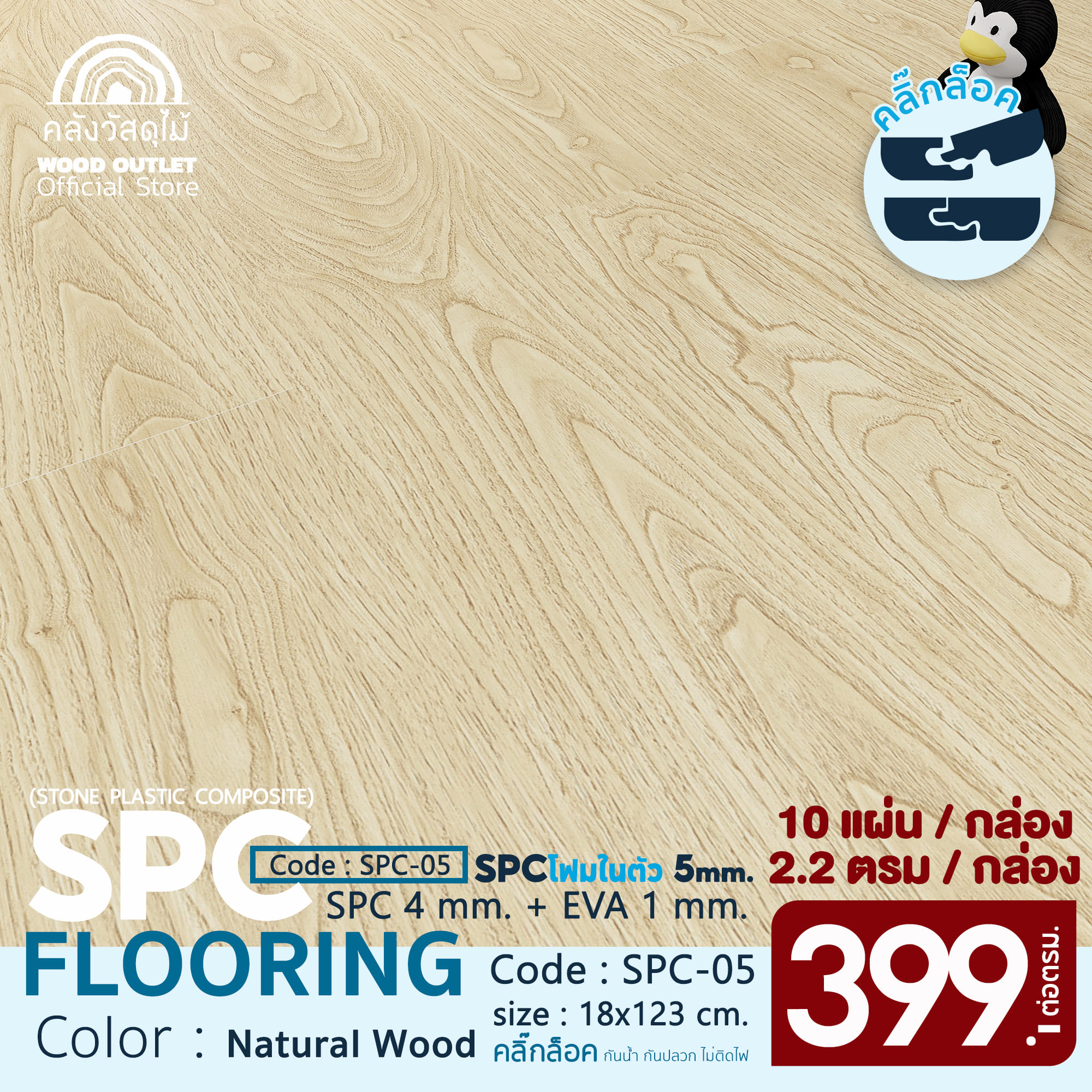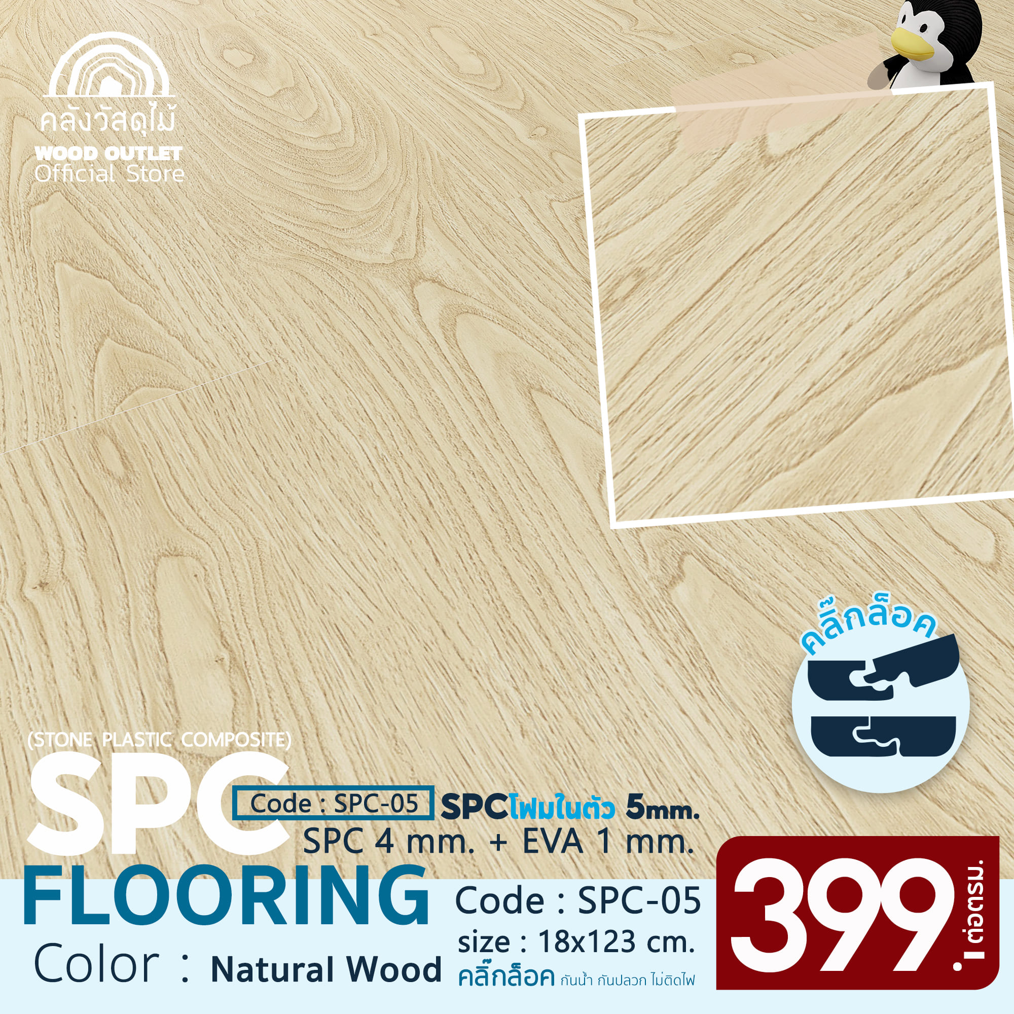 กระเบื้องSPC-โฟมในตัว ลายไม้ แผ่นพื้นสำเร็จรูป SPC-05 สี Natural (ไม้ธรรมชาติ) 2.2 ตารางเมตร = 10แผ่น/กล่อง