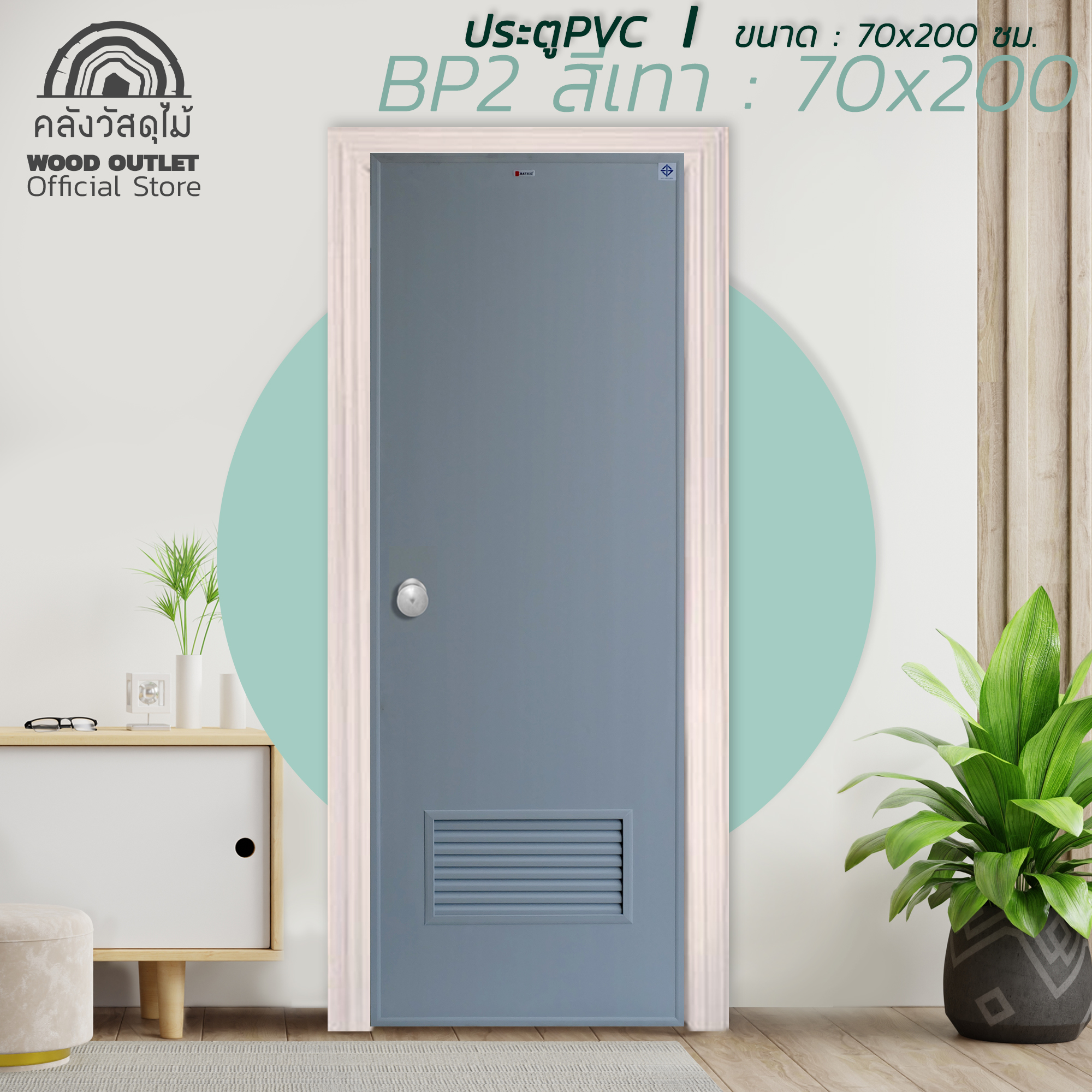 ประตูห้องน้ำPVC รุ่นบานเกร็ดล่าง BP2 สีเทา เลือกขนาดได้ตามต้องการ