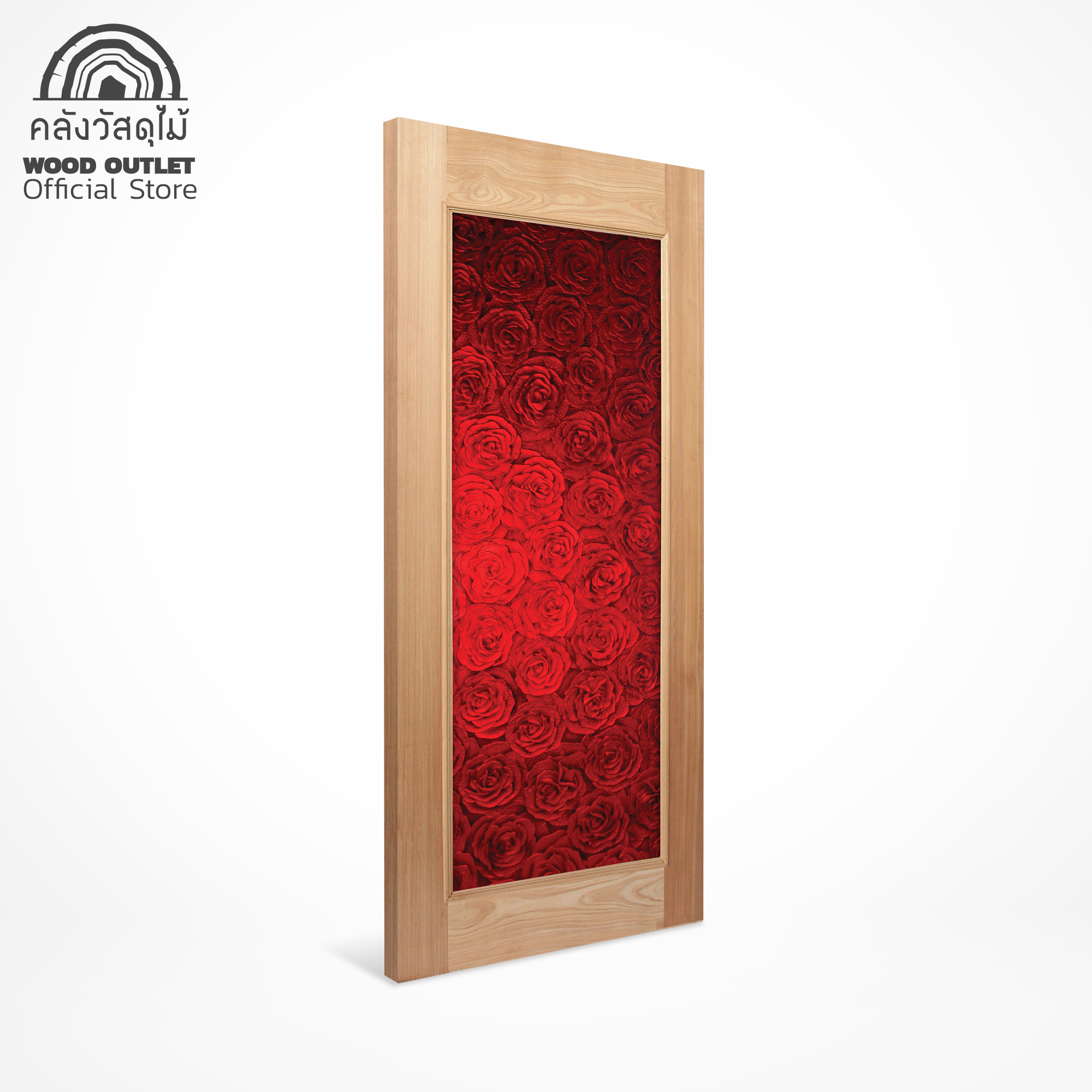 ประตูไม้กระจกนิรภัย กระจกเพ้นท์ลาย รุ่น MASTER-001 ขนาด 80×200 cm.