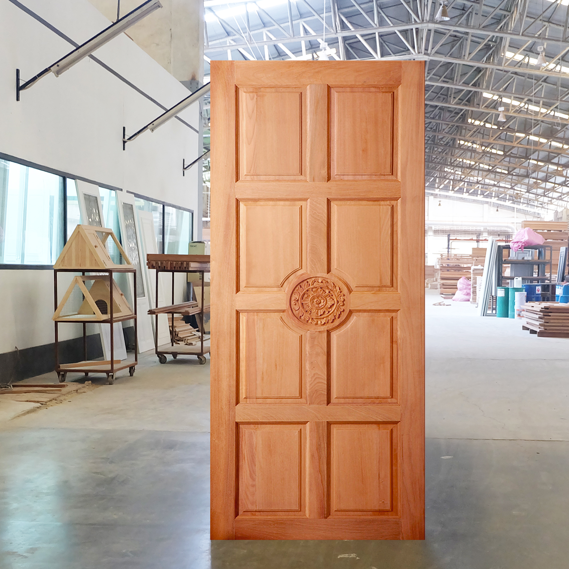 • ประตูไม้สยาแดง สีเนื้อไม้สวยงามให้ความรู้สึกเป็นธรรมชาติ