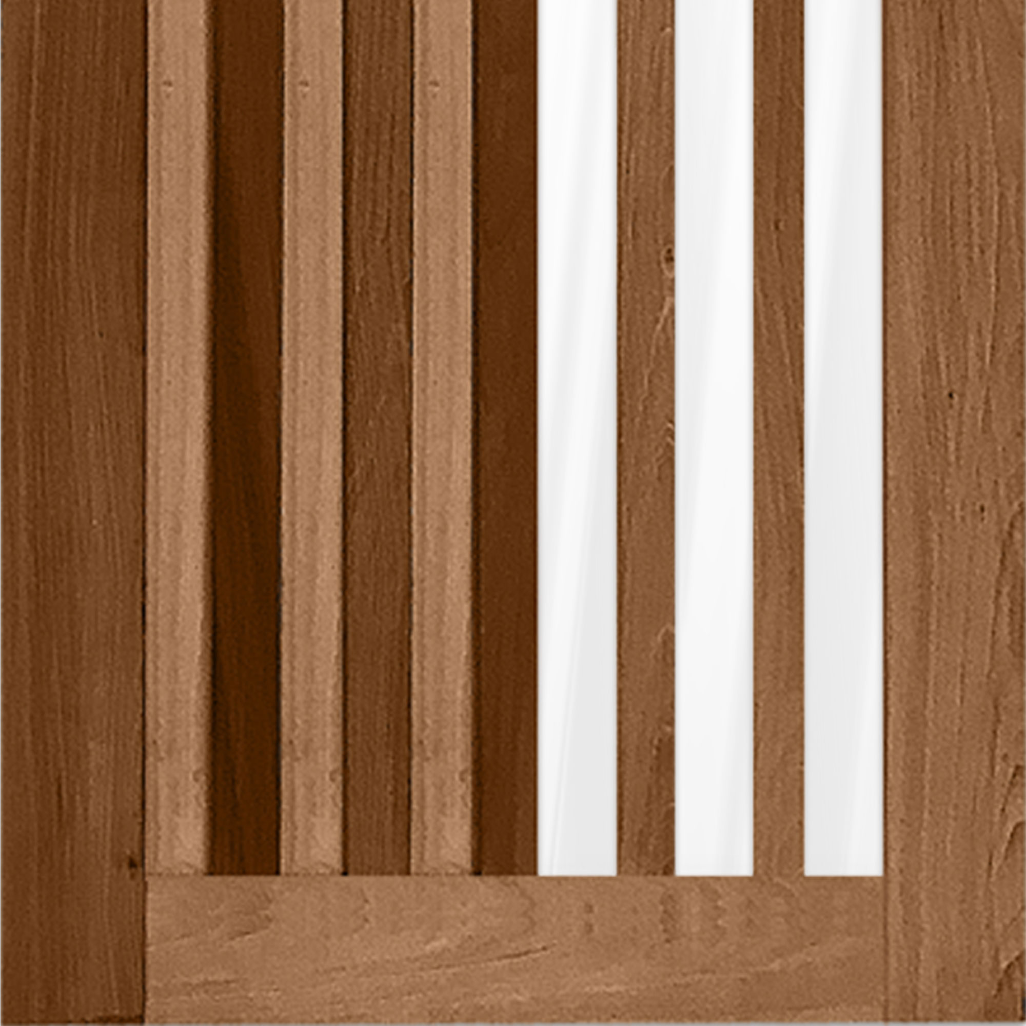 • ประตูไม้สยาแดงอบแห้งเน้นความเรียบง่ายในความชื้นสัมผัส 12-15% เพื่อลดปัญหาไม้หด บวม หรือ โก่งงอ มีเนื้อไม้โทนสีน้ำตาล