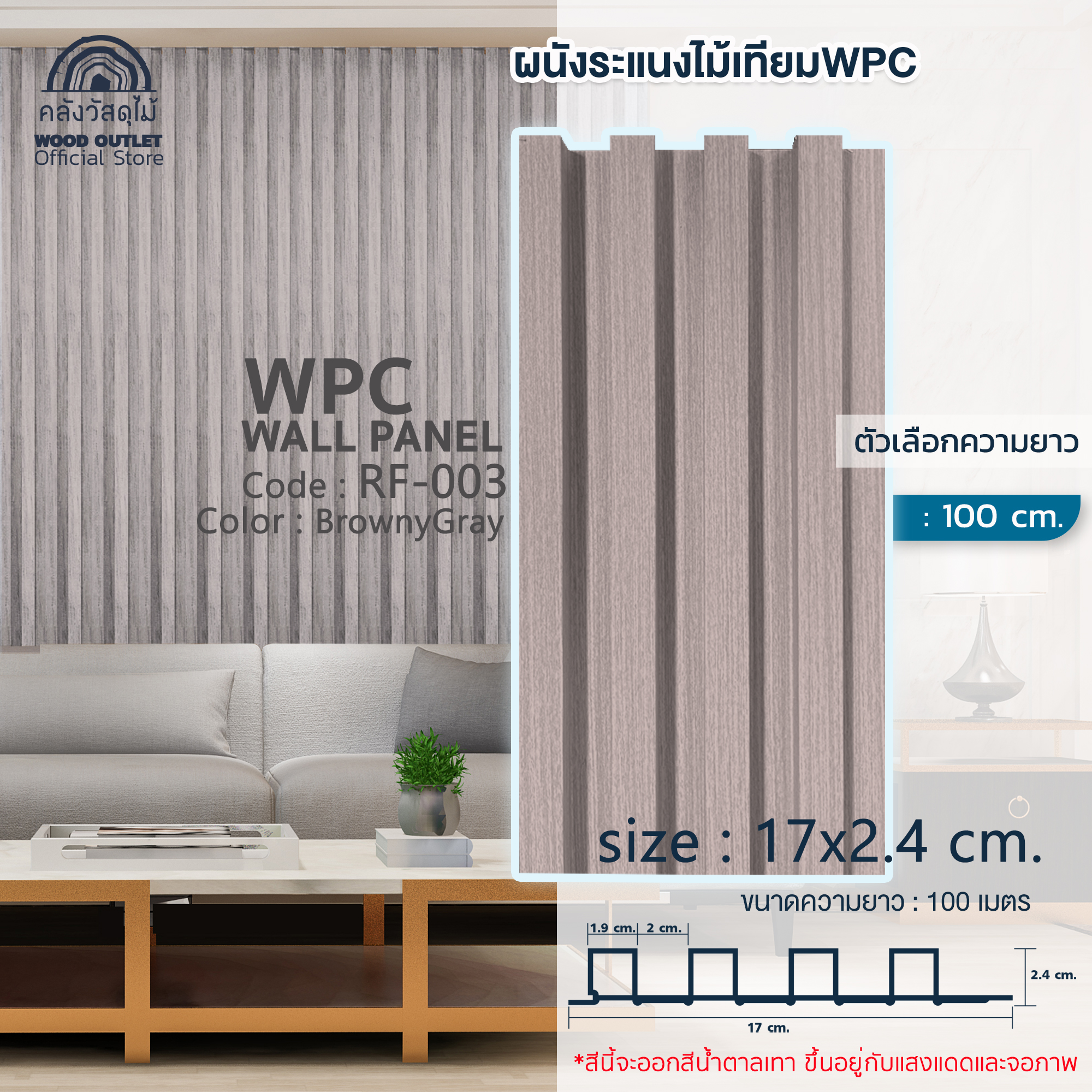 ระแนงไม้เทียมติดผนัง ไม้เทียมWPC ลอนเหลี่ยม RF-003 Dark Gray (สีเทาเข้ม) ขนาดแผ่น 17×2.4ซม