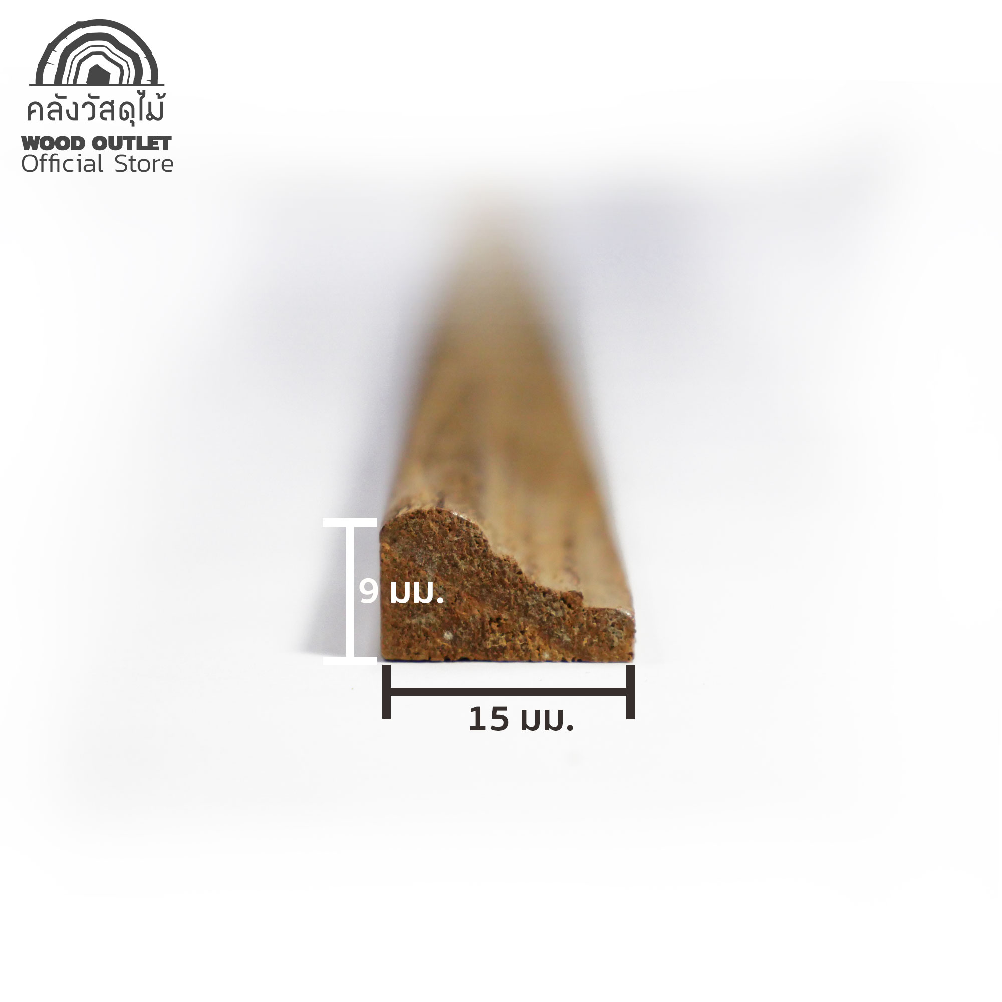 ไม้คิ้ว-ไม้บัว (ไม้สักทอง) ไม่ทำสี รุ่น M0410 ขนาด 9×15 มม. เลือกความยาวได้ (มัดละ5ชิ้น)