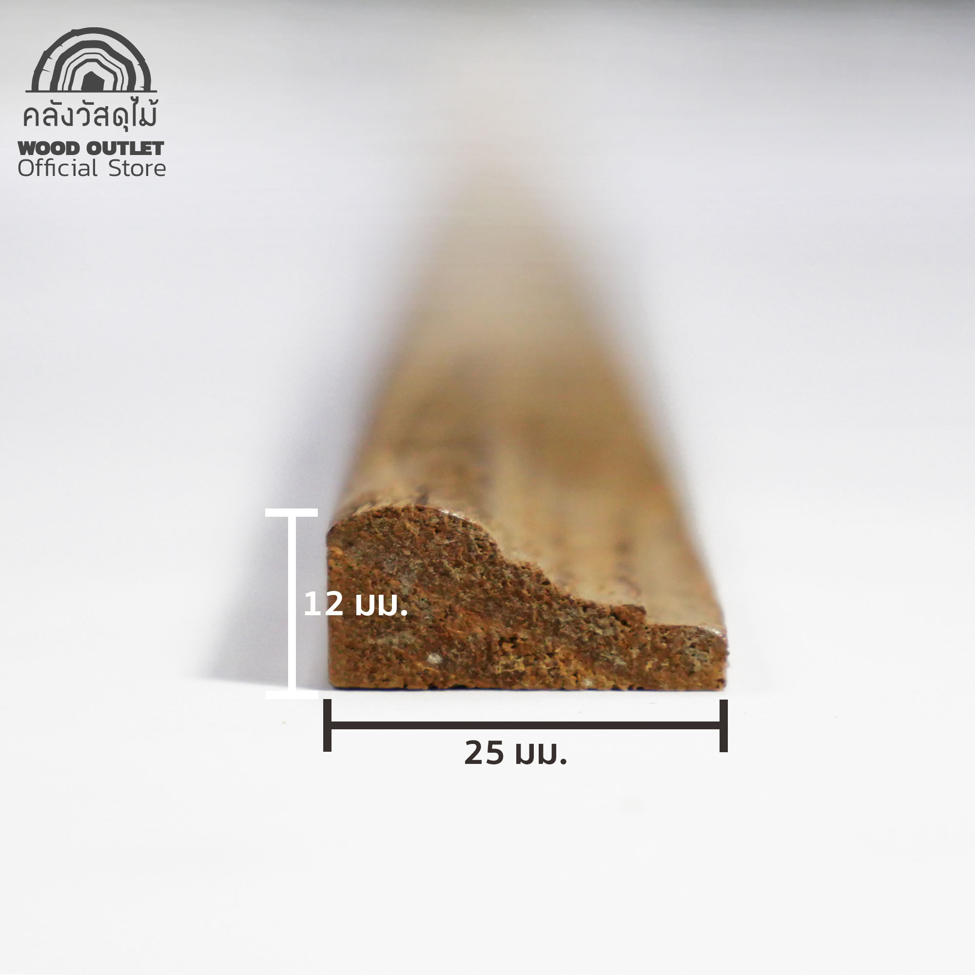 ไม้คิ้ว-ไม้บัว (ไม้สักทอง) ไม่ทำสี รุ่น M0412 ขนาด 12×25 มม. เลือกความยาวได้ (มัดละ5ชิ้น)