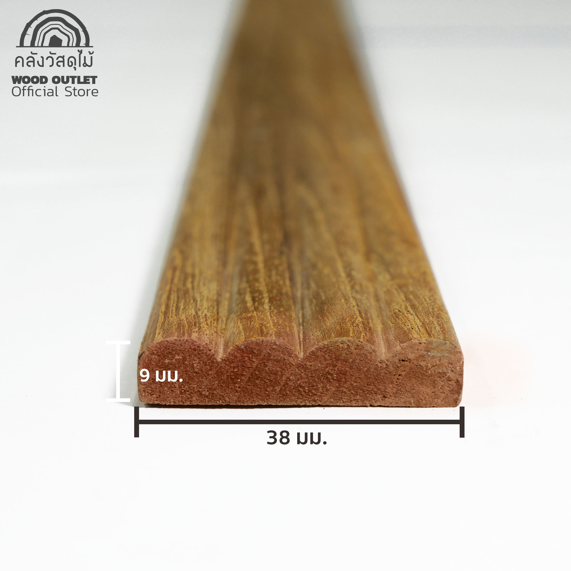 ไม้คิ้ว-ไม้บัว (ไม้สักทอง) ไม่ทำสี รุ่น M0501 ขนาด 9×38 มม. เลือกความยาวได้ (มัดละ5ชิ้น)