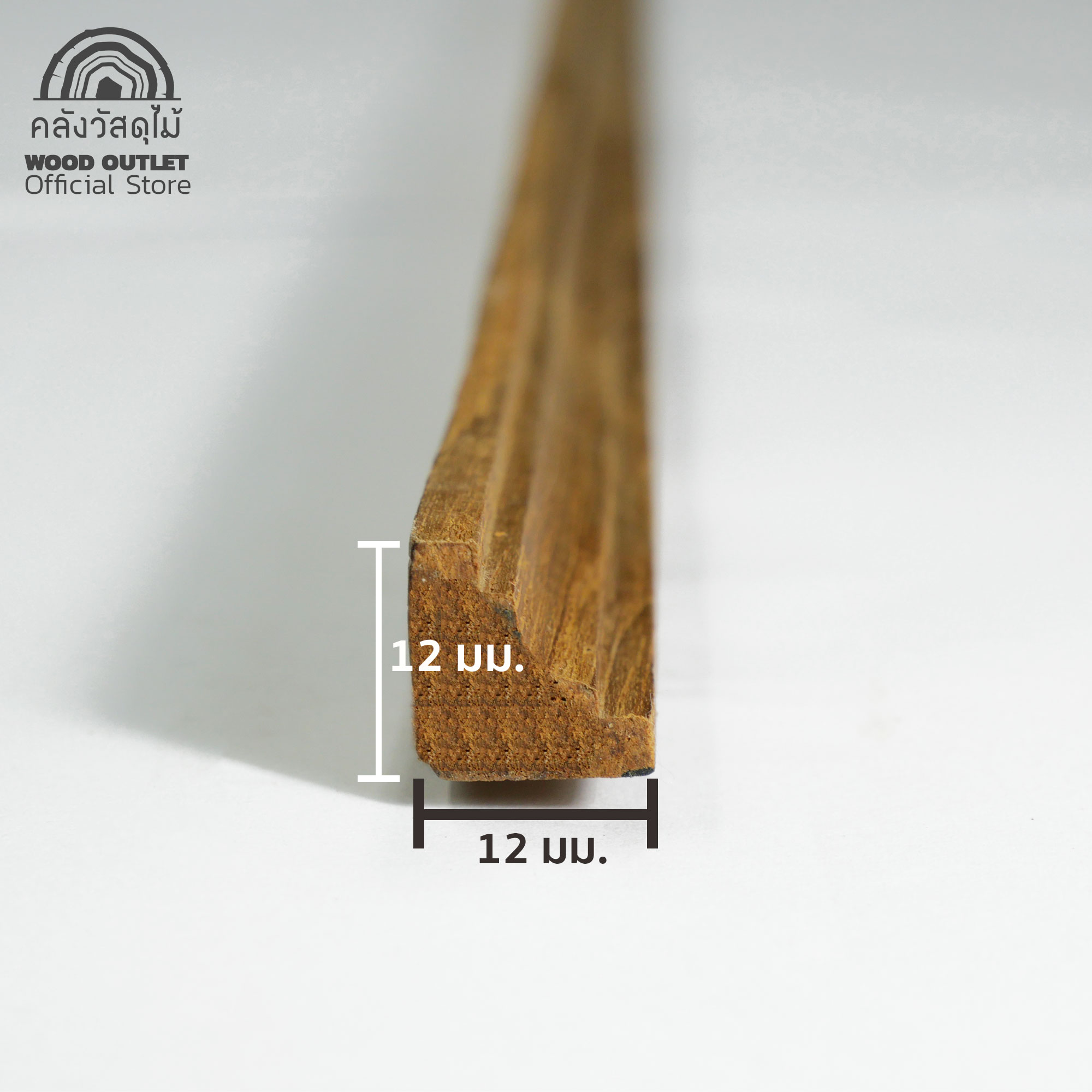 ไม้คิ้ว-ไม้บัว (ไม้สักทอง) ไม่ทำสี รุ่น M0510 ขนาด 12×12 มม. เลือกความยาวได้ (มัดละ5ชิ้น)