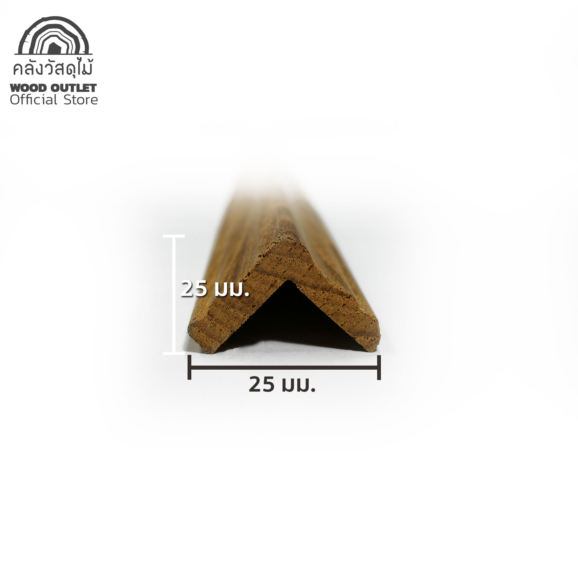 ไม้คิ้ว-ไม้บัว (ไม้สักทอง) ไม่ทำสี รุ่น M1402 ขนาด 25×25 มม. เลือกความยาวได้ (มัดละ5ชิ้น)